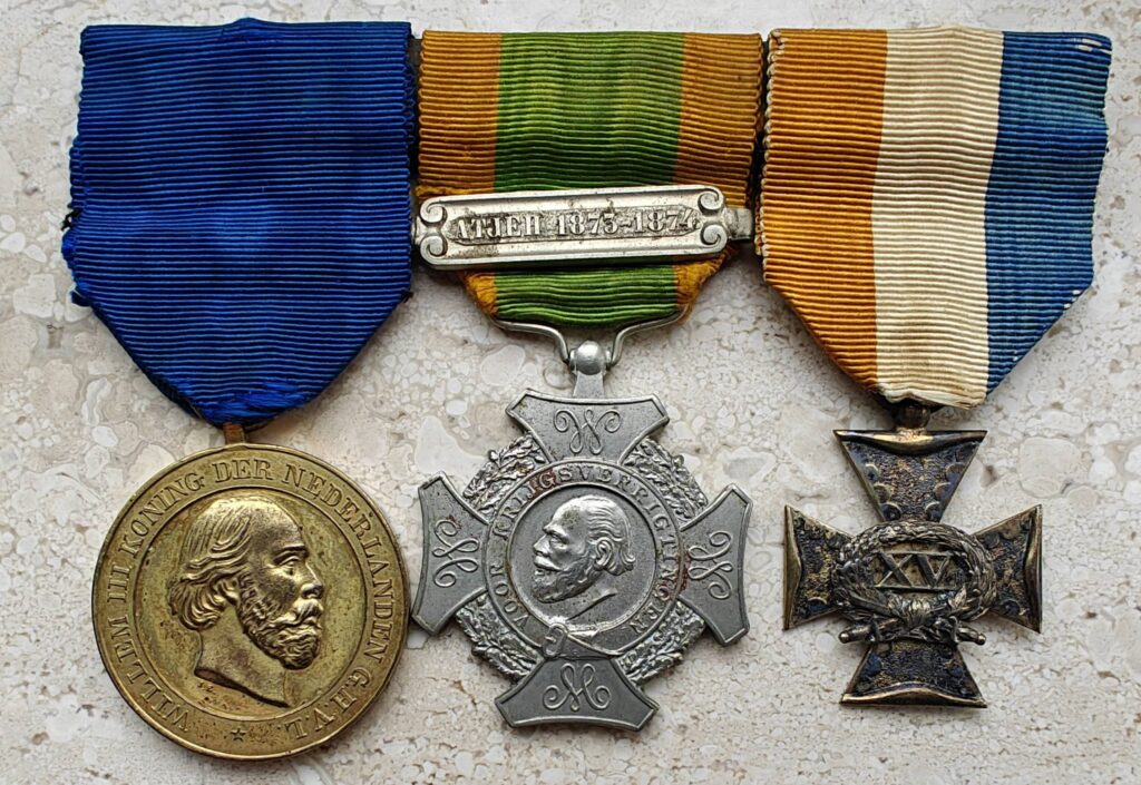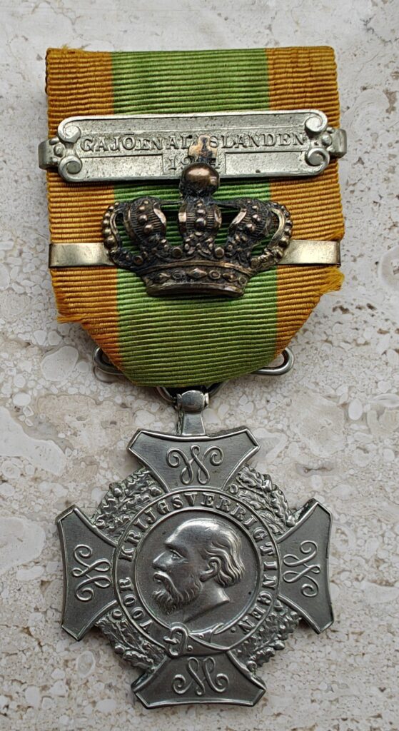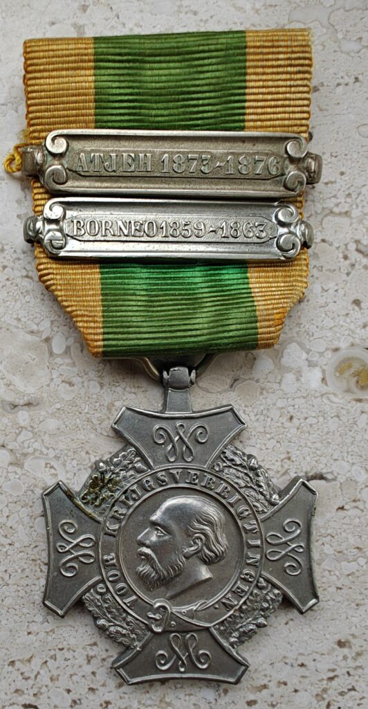 Zoals op de middelste foto hierboven te zien is kon ook een kroon voor Eervolle Vermelding (dapperheid onder het niveau van een Militaire Willemsorde) op de medaille gedragen worden. Je kunt hier meer lezen over dit ereteken aan een marine arts.