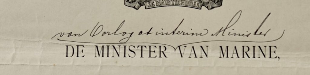 En hieronder nog een variant toen er tijdelijk geen Minister van Marine was en deze functie waargenomen werd door de Minister van Oorlog. Dit werd gedaan door de tekst handmatige aan te passen zoals hier te zien is:
