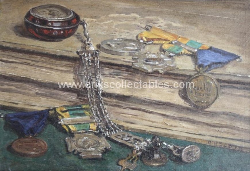Schilderij met 2 EBK’s en andere medailles